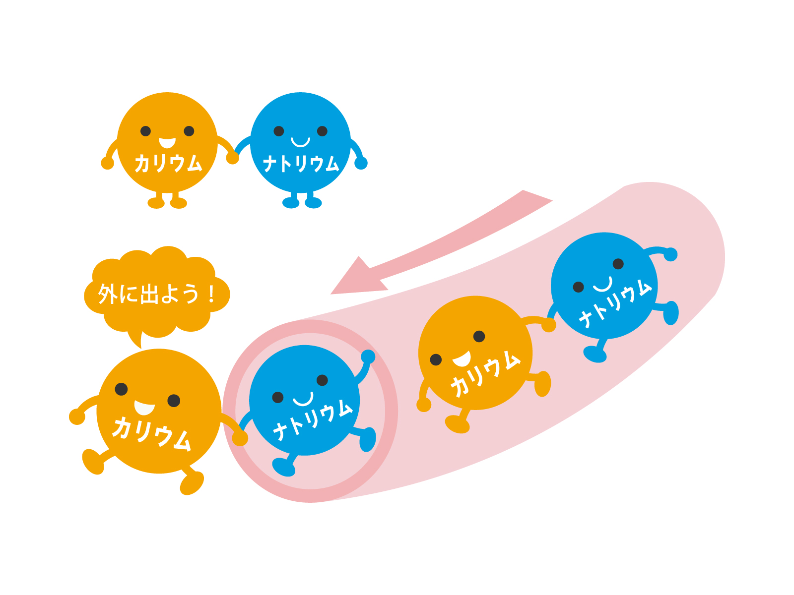 カリウムは腎臓でナトリウムの再吸収を抑制するはたらきがあり、尿からのナトリウム排出が促進されます。ナトリウムが減ると血液中の水分が減り、血圧が下がります。