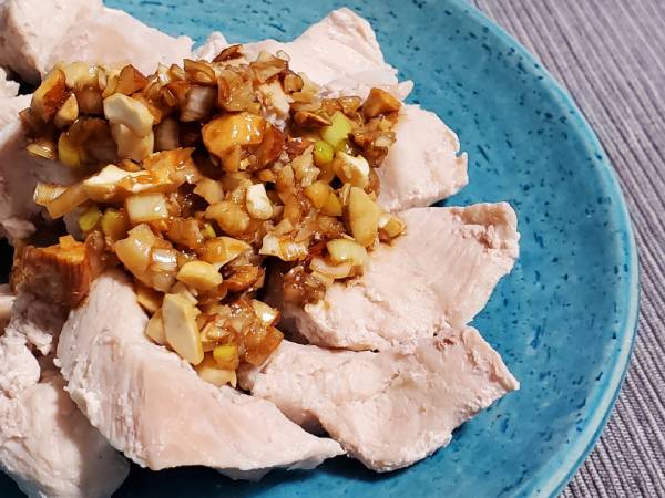 減塩レシピ2:蒸し鶏のナッツソースがけ