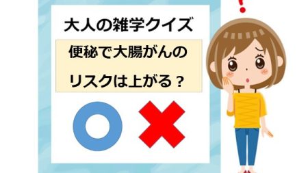 「便秘気味だと腸内環境が悪化して、大腸がんになるリスクが上がるのでは?」と考える人も多いようですが、便秘によって大腸がんのリスクが上がるという明らかな報告はないそう。クイズの答えは「×」が正解でした!