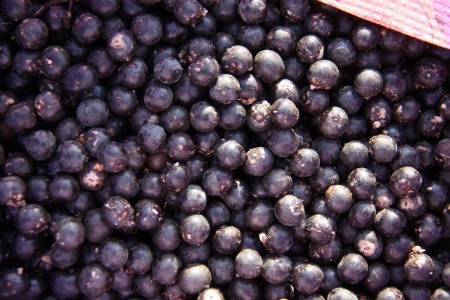アサイーはブラジル原産のヤシ科の植物でブルーベリーのような果実を実らせます。赤ワインのような渋みがあり、ほどよい酸味と甘みが特長です。
