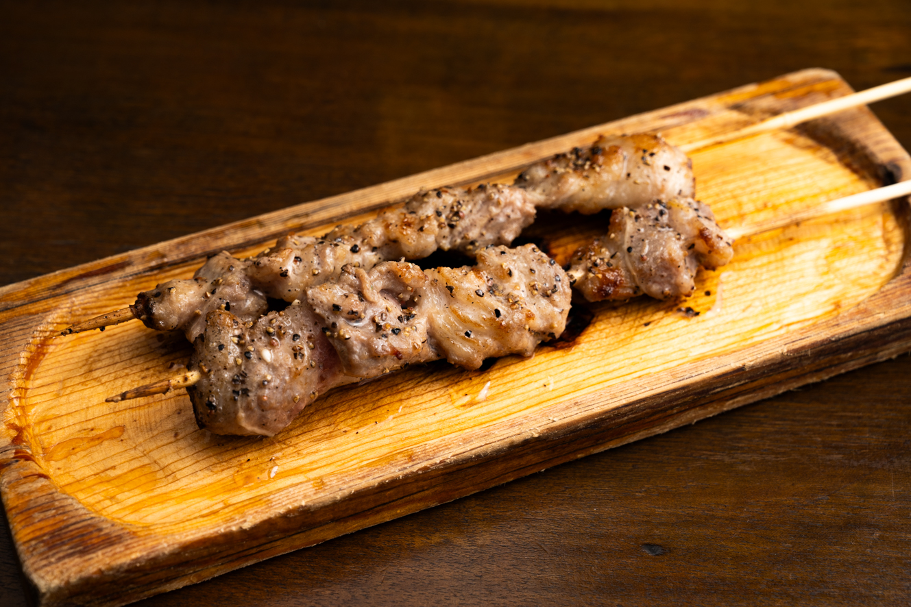 串焼きをもう1品。こちらは「香りのよい脂で焼いたラムの腎臓」638円。