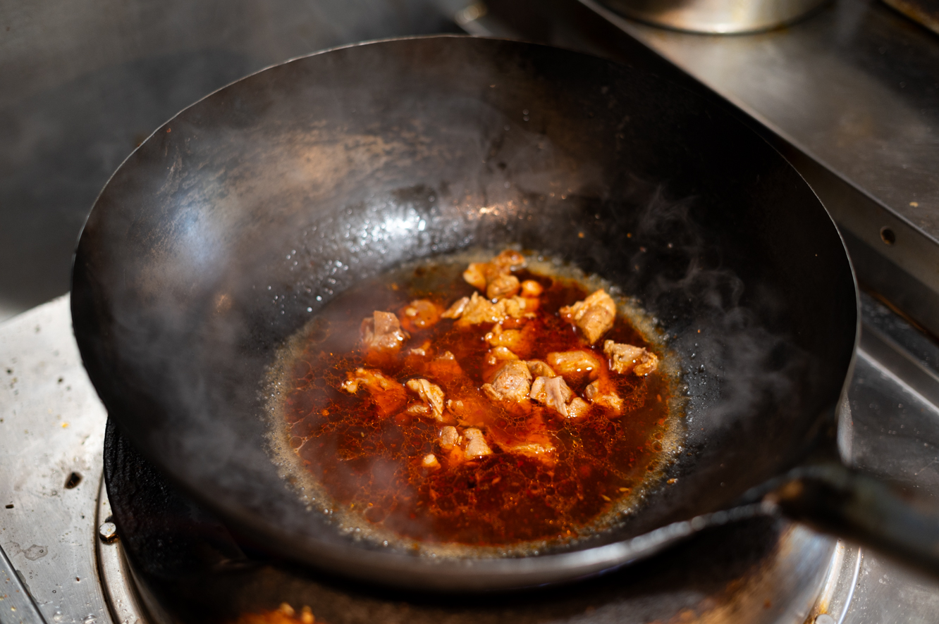 「数種類の唐辛子とゴマなどを、揚げるだけでなく複雑な工程を経て作るラー油です」とスヨリトさん。ラー油を売って欲しいというお客様も多いそうです。