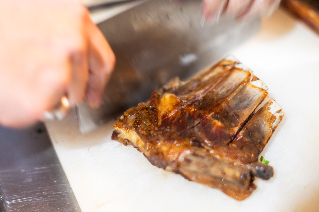 スヨリトさんは、羊肉のそれぞれの部位の肉質や特徴によってマリネ液の内容を変えています。例えば皮付きスペアリブの場合は、肉をしっとりとさせ、皮をやわらかくするためにマリネ液にはヨーグルトを使用。