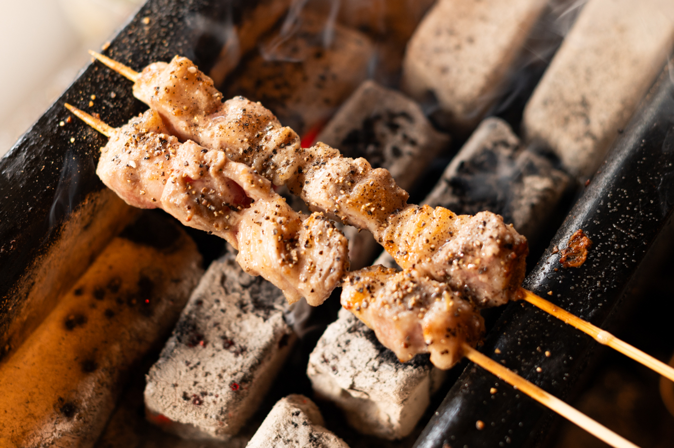 炭火でじっくり焼き上げながら塩とコショウで味付けをして完成です。