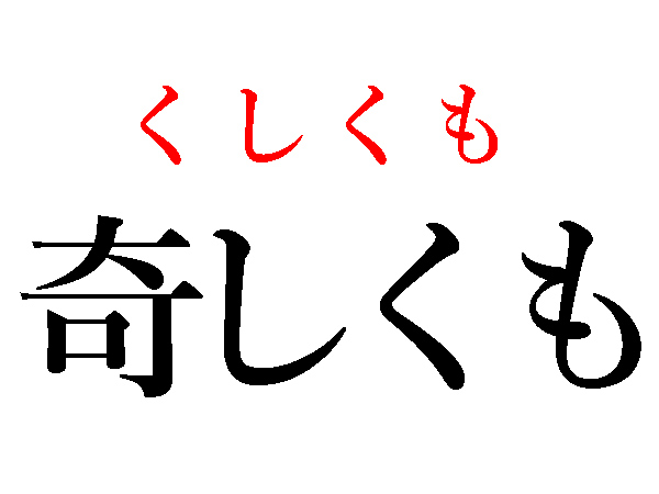 「ふしぎにも」「あやしくも」「偶然にも」といった意味で使われる言葉。きしくも、と読みたくなるところですが、間違いです。
