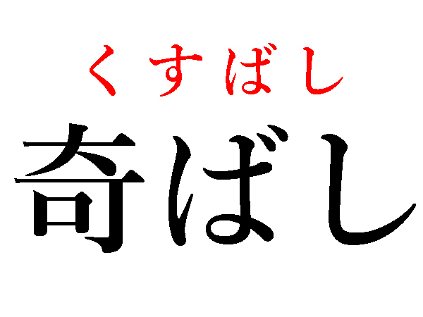 現代用語としてはあまり使われない言葉ですが、神妙なふうをするという意味で、「奇しがる」(くすしがる)、不思議な状態になるという意味で「奇ぶ」(くしぶ)など、他にもいくつか読み方があります。非常に奇妙なことを意味することばとして「奇天烈」(きてれつ)などもありますね。