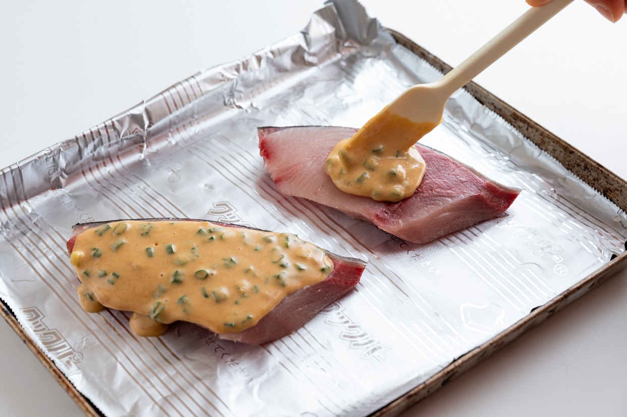 味噌の効果で身が少しやわらかくなり、マヨネーズによってコクがアップする、旨味がいっぱいの一品です。