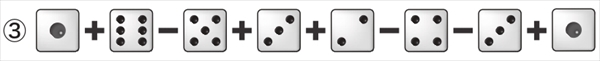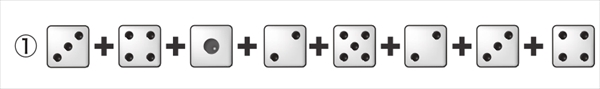さいころの目の数を見て、下の指示のとおりに計算してください。さいころの目の数は裏表を合わせると必ず7になります。できるだけメモしないで計算してください。