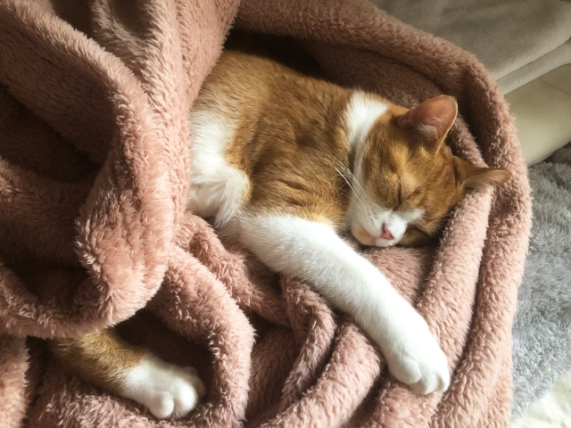 冬に強く丸まっていたら寒い証拠です。潜り込んで体を温められるよう毛布を準備しておくとよいでしょう。