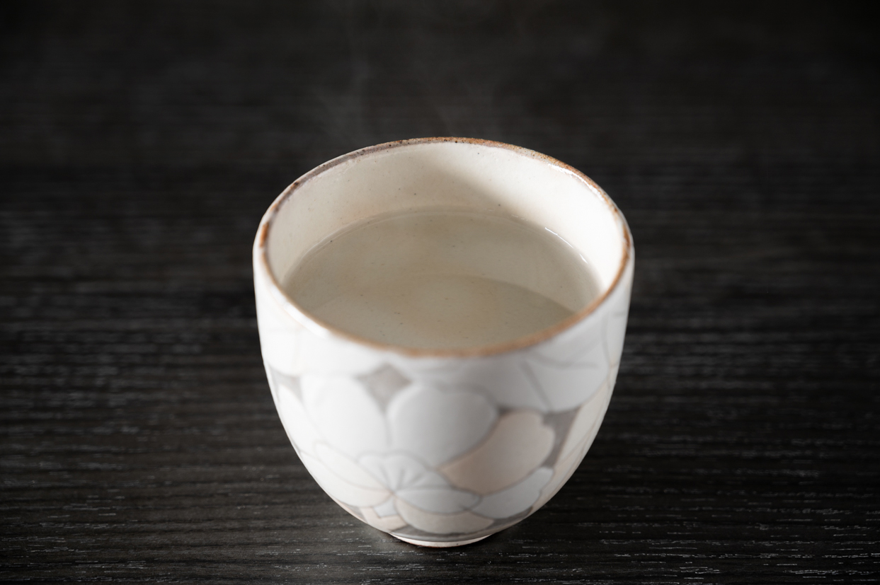 料理に合わせやすい優しい味わい。口当たりも喉ごしもなめらかに。湯呑や厚めのグラスにお湯を入れてから焼酎を注ぎます。お湯と焼酎の温度差によって対流ができ自然に混ざるので、かき混ぜる必要はありません。また、焼酎は夏の季語でもあり、実は体を冷やす特性があるため、寒い時期にはお湯割りがオススメです。