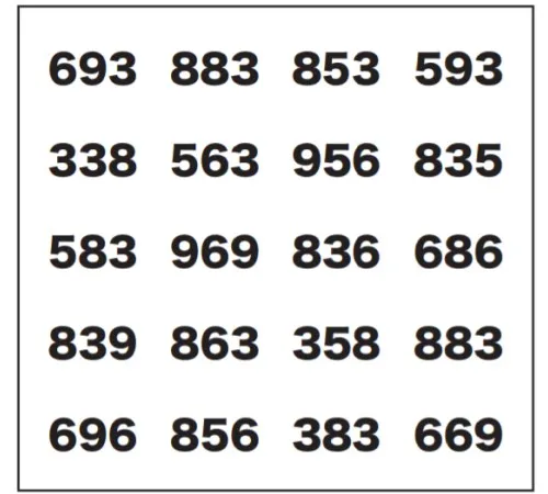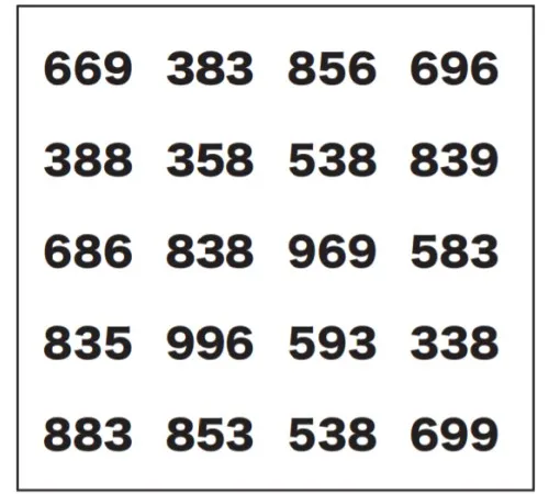 それぞれの枠の中で、同じ数字が1組だけあります。それを探し当ててください。