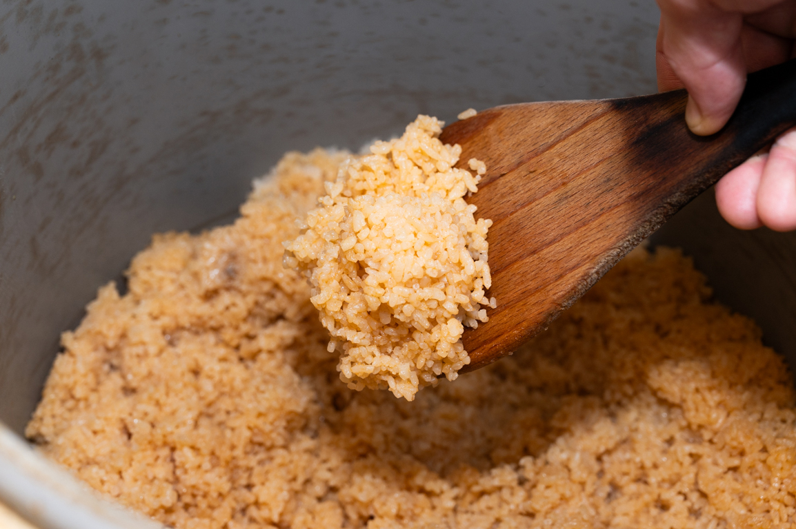 6 5を炊飯器に入れ、水とブ炊き込み用イヨンを加えて炊く。