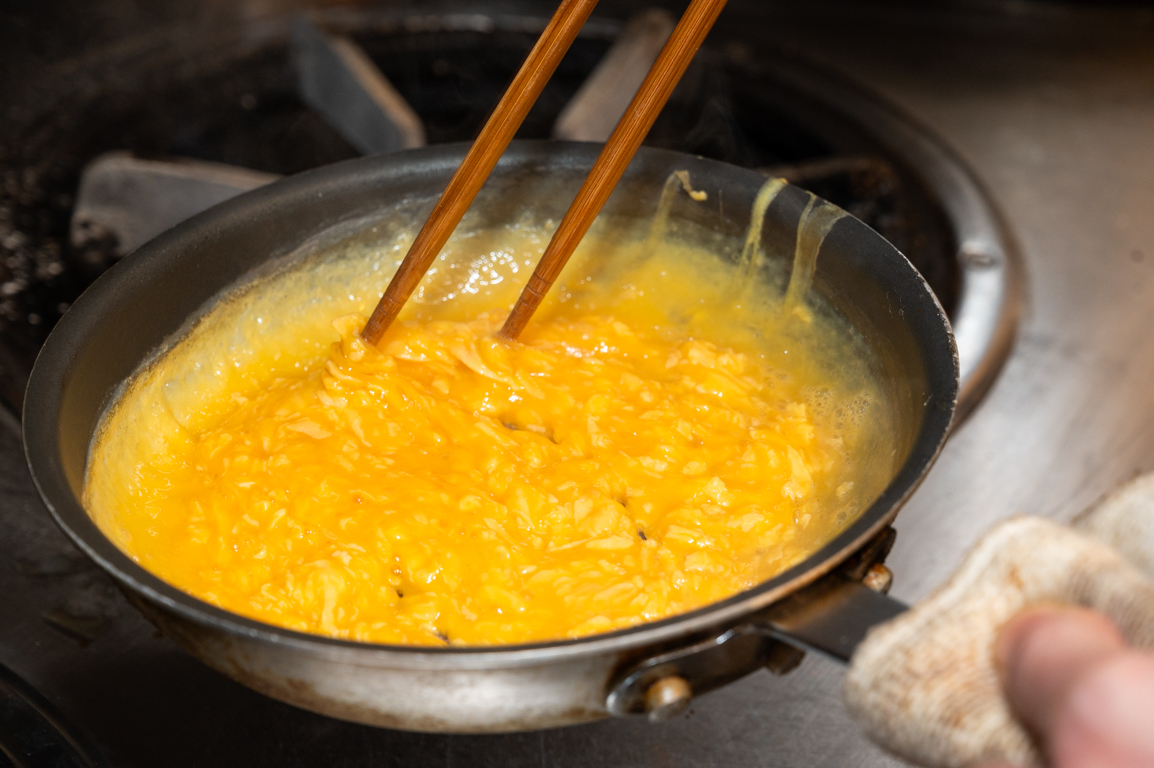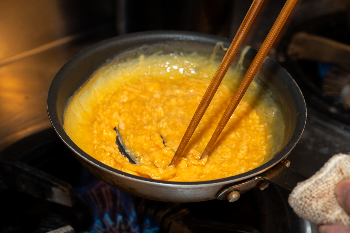 11 火から外して10秒ほど余熱で卵に火を通す。