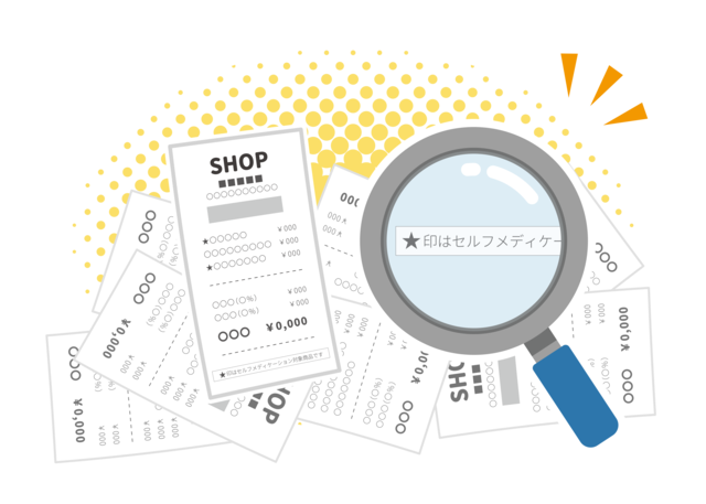 セルフメディケーション税制の対象とされる医薬品は、購入した際のレシート(領収書)に控除対象であることが記載されています。