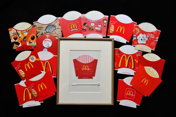 フライドポテトのパッケージとマドラーは、額縁に入れて大切に保管