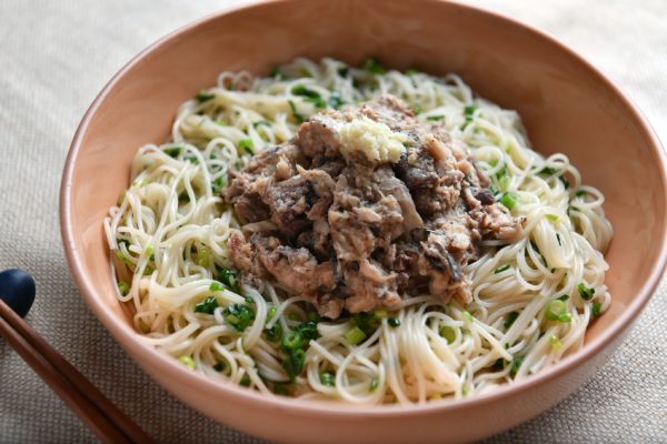 【エアコンで冷えた体に】サバ缶と小ねぎの混ぜ麵