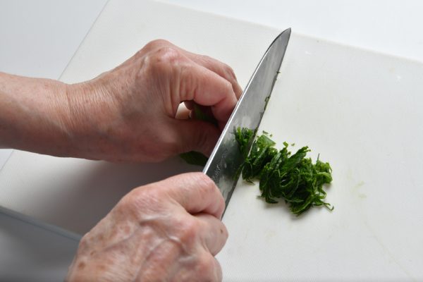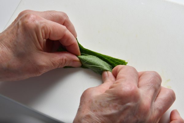 大葉はなるべく細く切るのがポイント。口当たりがよくなります。