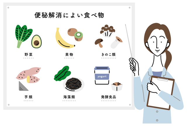 食物繊維を豊富に含む食べ物や、腸内環境を改善する効果が期待できる食べ物を積極的に摂取して、便秘の解消につなげましょう。