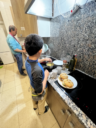 宿のキッチンで家族で自炊も