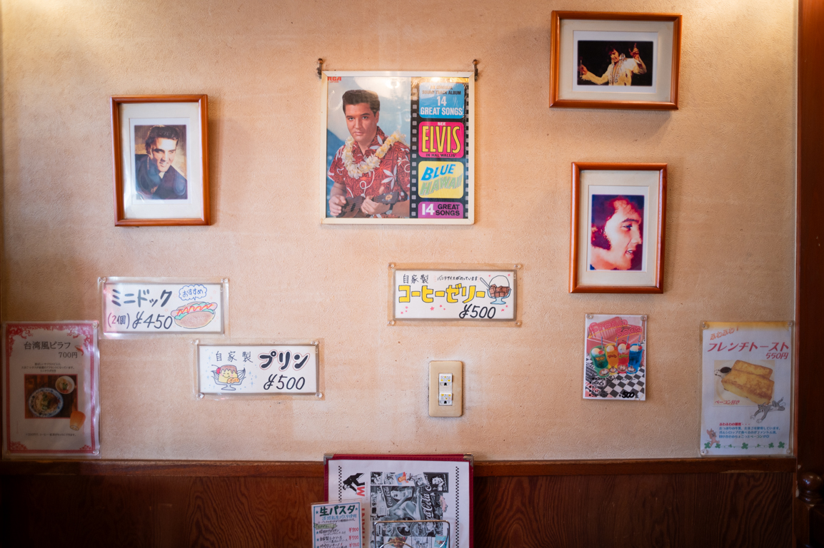 エルビス・プレスリーが大好きで、店内にはプレスリーのポスターやオーナメントなどが飾られ、BGMももちろんプレスリー。