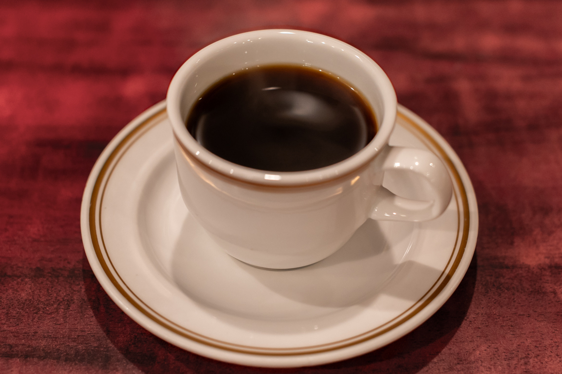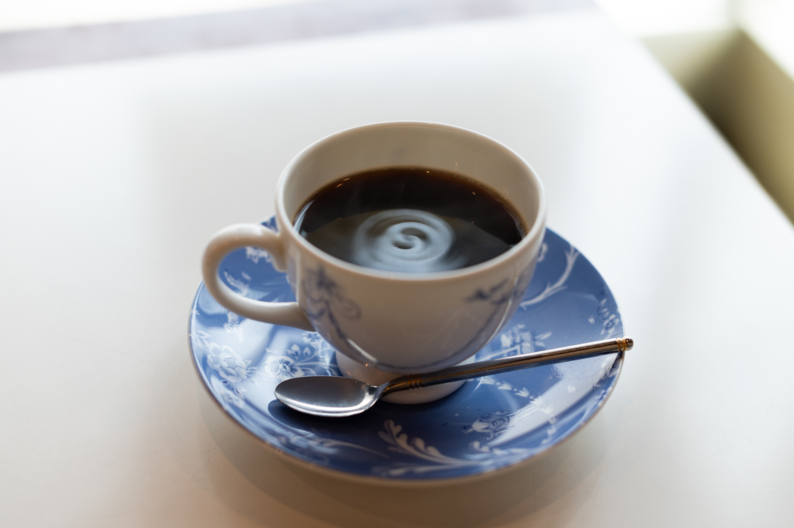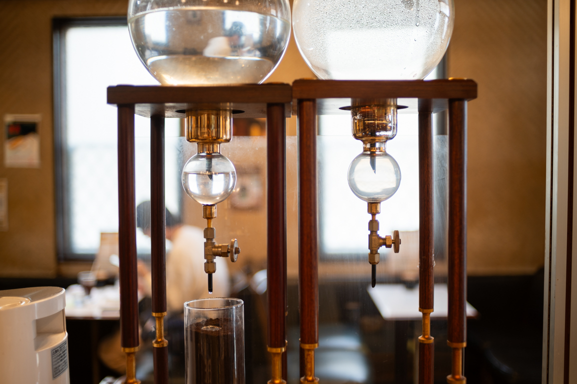 落ち着いた店内では、サイフォンで丁寧に抽出されたまろやかな味わいのコーヒー(600円)を楽しむことができます。