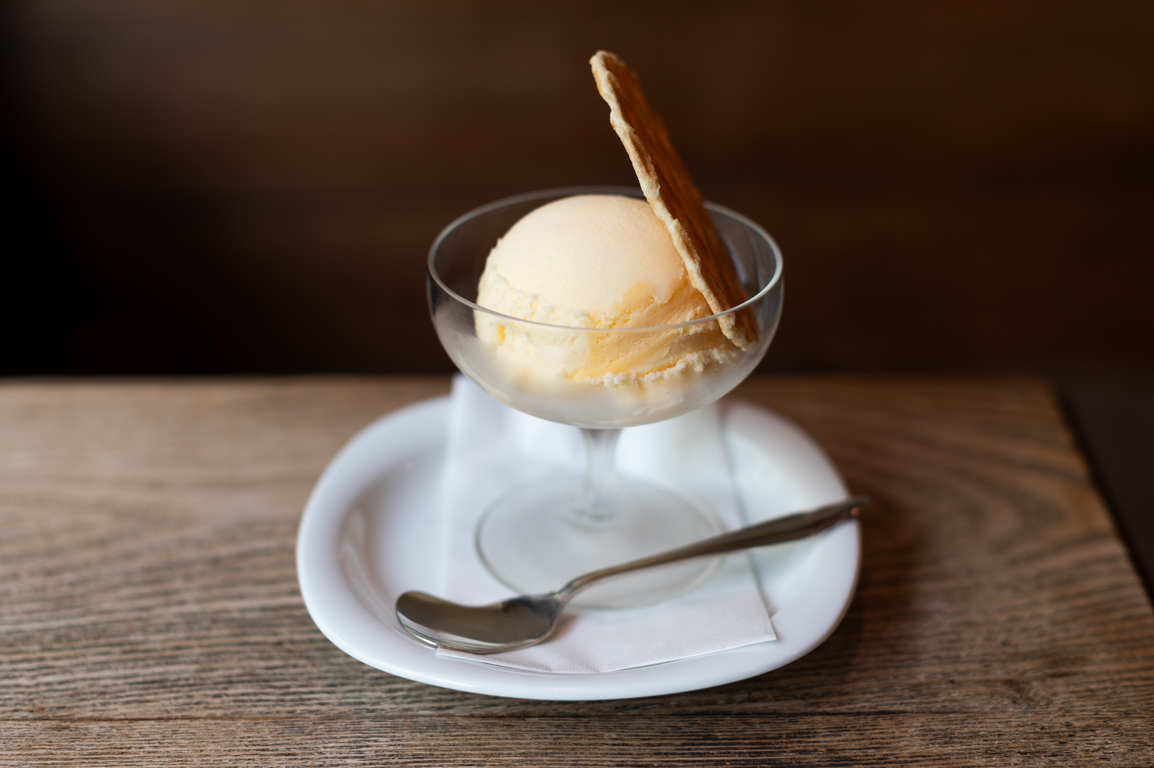 とっても滑らかで、ほどよい甘さの自家製アイスクリーム(550円)。午後の食後のデザートや休憩タイムにオススメです。