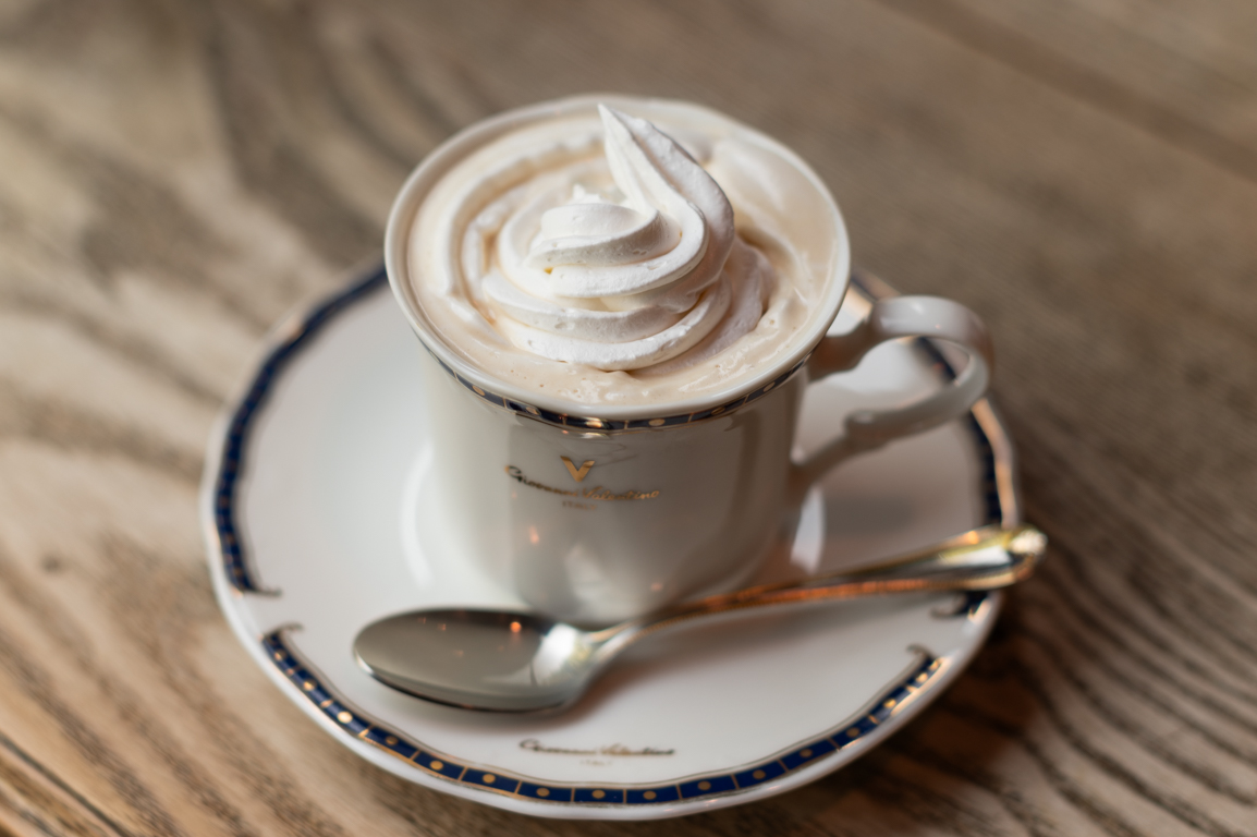 ウインナーコーヒー(580円)。甘いホイップクリームを溶かしながらゆっくりと過ごすのもいいですね。