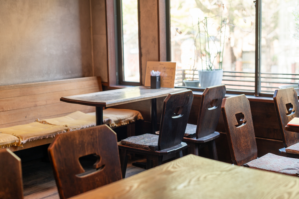 つくばエクスプレス浅草駅より徒歩約7分。先代が長野から上京し、1972年に創業した「ロッヂ赤石」は、木とレンガを基調とした山小屋風の落ち着いたインテリアが特長の喫茶店です。