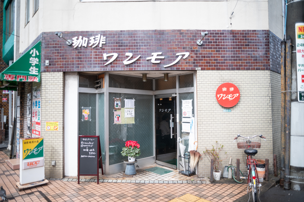 JR総武線「平井」駅から徒歩約2分の場所にある「珈琲ワンモア」。創業は1971年。店主の福井明さんは子どもの頃、コーヒーの香りが漂う喫茶店が “大人への架け橋”のようで大好きだったといいます。60年代には渋谷で、当時最先端だったというアメリカンスタイルの喫茶店「マウンテン」で、コーヒーの淹れ方やホットケーキの作り方などを習ったそうです。