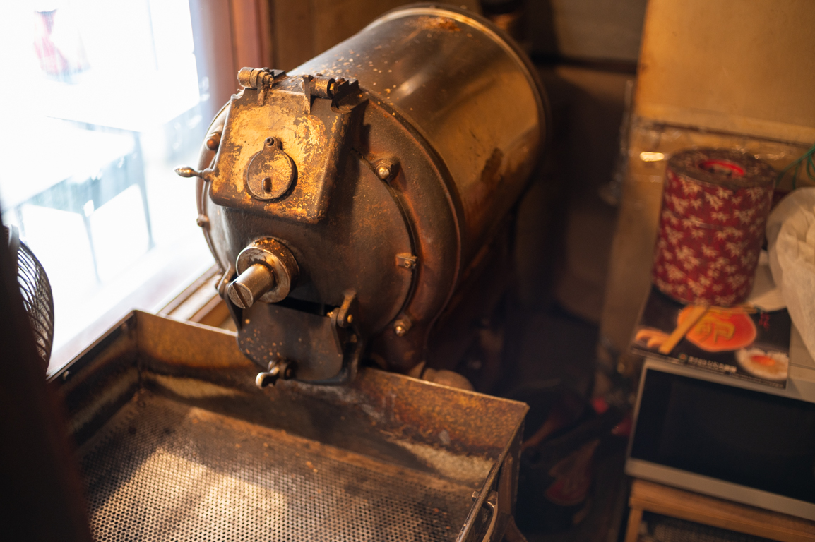 「焙煎機がないと好みの味を出せない」という福井さんのこだわりから、「ワンモア」では、ブラジル系の豆を自家焙煎した深煎りのコーヒー豆をペーパーでドリップしてコーヒーを提供しています。