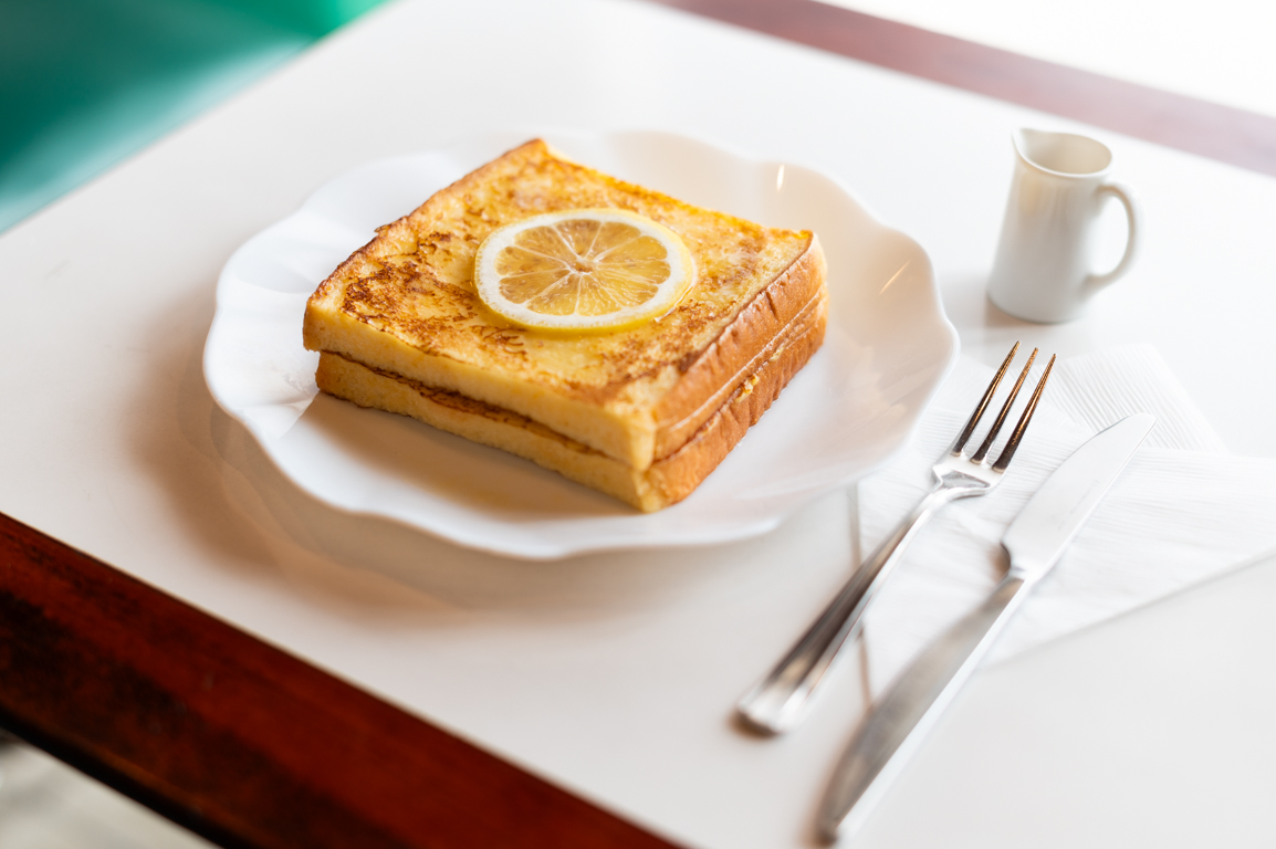 メープルシロップをかけていただくと、甘さと酸味のバランスがちょうどよく、まるでレモンケーキ!女性客にはホットケーキよりも人気だそうです。パンの厚みもほどよく、あっさりといただけてブランチにぴったり。