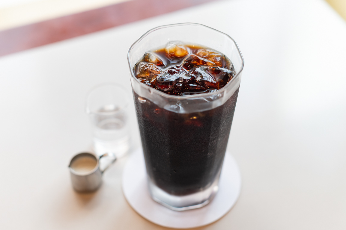 アイスコーヒーはシロップ入りで、これは福井さん曰く「昔は砂糖は貴重品で、砂糖があれば必ず入れていた」という当時のスタイルから。