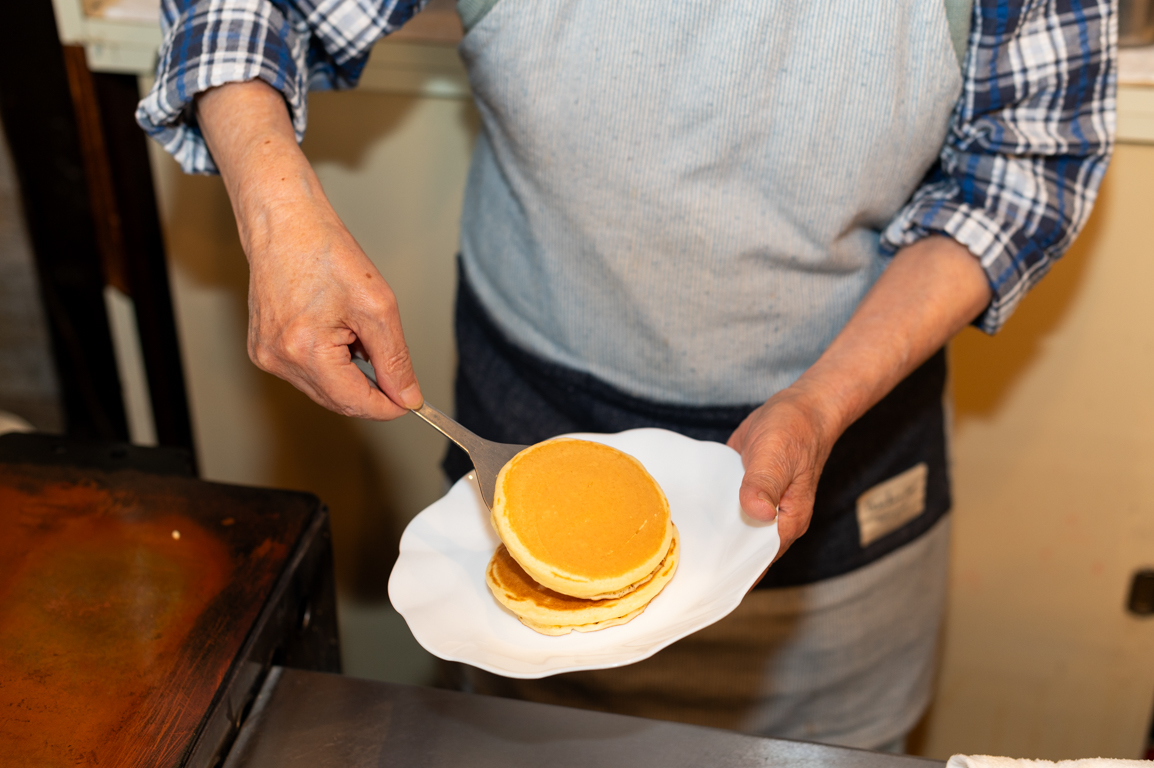 「ワンモア」の軽食のなかでも人気で、さまざまなメディでも紹介されているのがホットケーキ(700円)です。