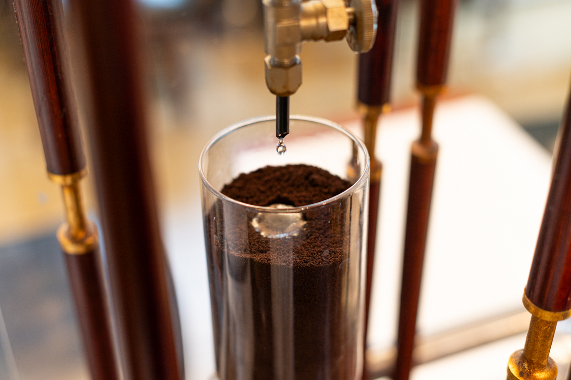 専用の機械でコーヒー豆に水を1滴1滴たらし、約8時間かけて抽出。深みがあって、からだに染み入るようなおいしさの「アイスダッチコーヒー」は絶品です。