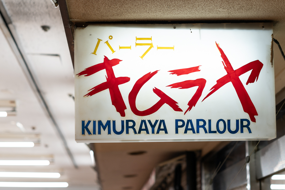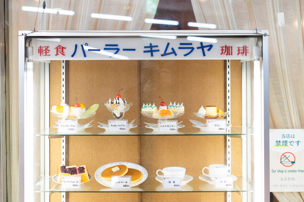 地下1階、ビルの入り口近くにある「パーラー キムラヤ」。今では懐かしい食品サンプルが出迎えてくれます。