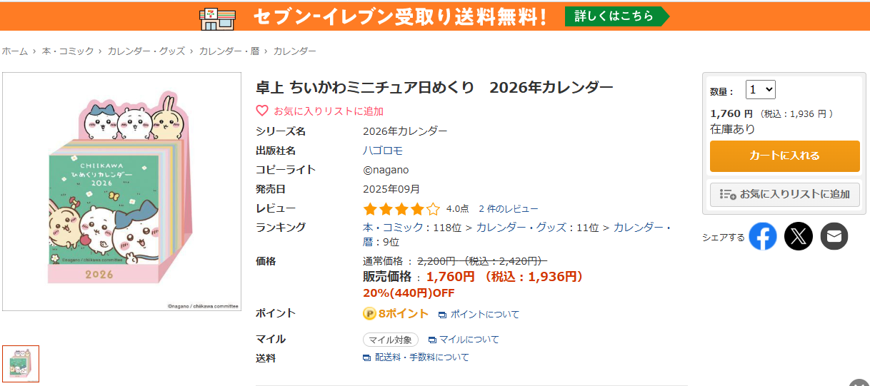さらに、ご紹介の『ちいかわ』だけでなく、セブンネットショッピングのカレンダーは、アイドル・エンタメ系がとっても豊富に取り揃えられています。今人気の定番アイドルやキャラはもちろん、2026年に有望な新たな推しメン・推しキャラをいち早くピックアップできちゃいますよ!