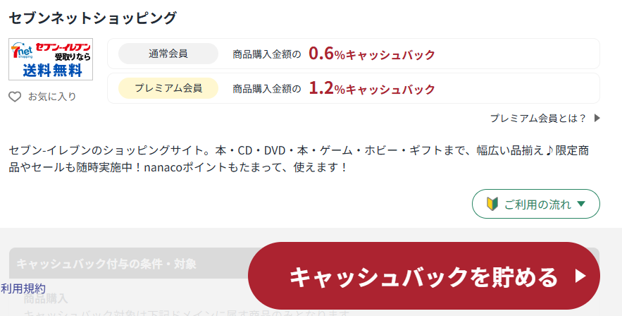 MyCloudアカウントにログインして、下画像の【キャッシュバックを貯める▶︎】ボタンをクリックしていただき、セブンネットショッピングでお買い物してもらうだけです!