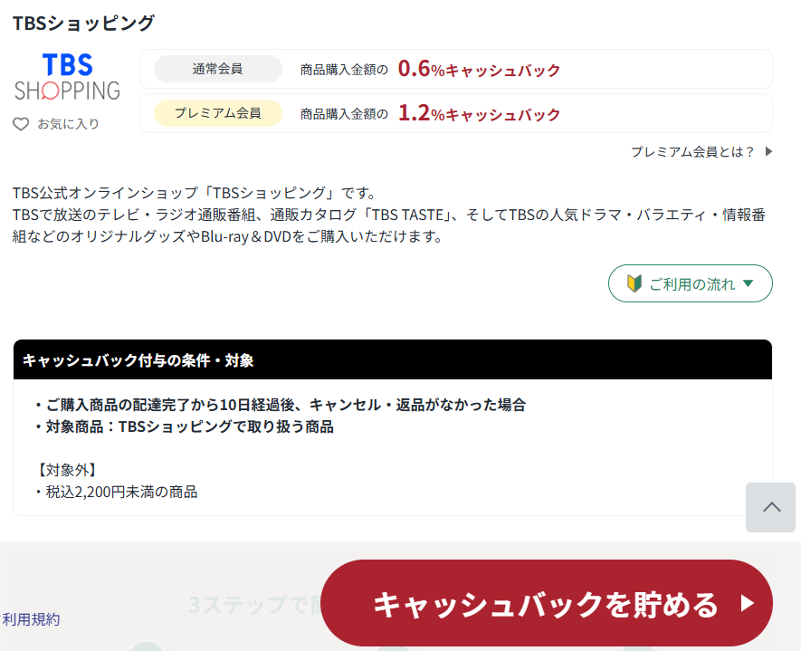 MyCloudアカウントにログインして、下画像の【キャッシュバックを貯める▶︎】ボタンをクリックしていただき、TBSショッピング「DREAM STAGE」でお買い物してもらうだけです!