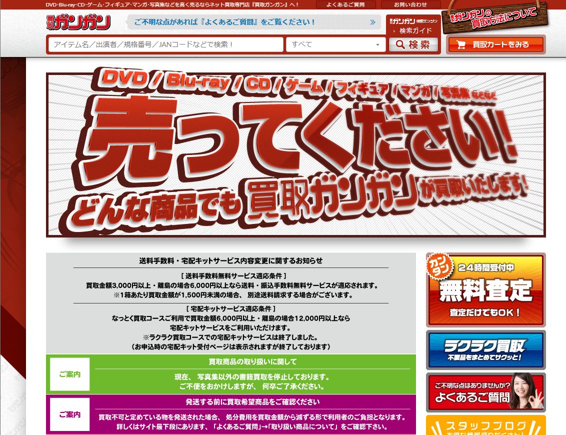 買取ガンガンは、DVD・Blu-ray・CD・ゲーム・フィギュア・マンガなどを「できるだけ高く、気持ちよく手放したい」という方に断然オススメのネット買取専門店です。