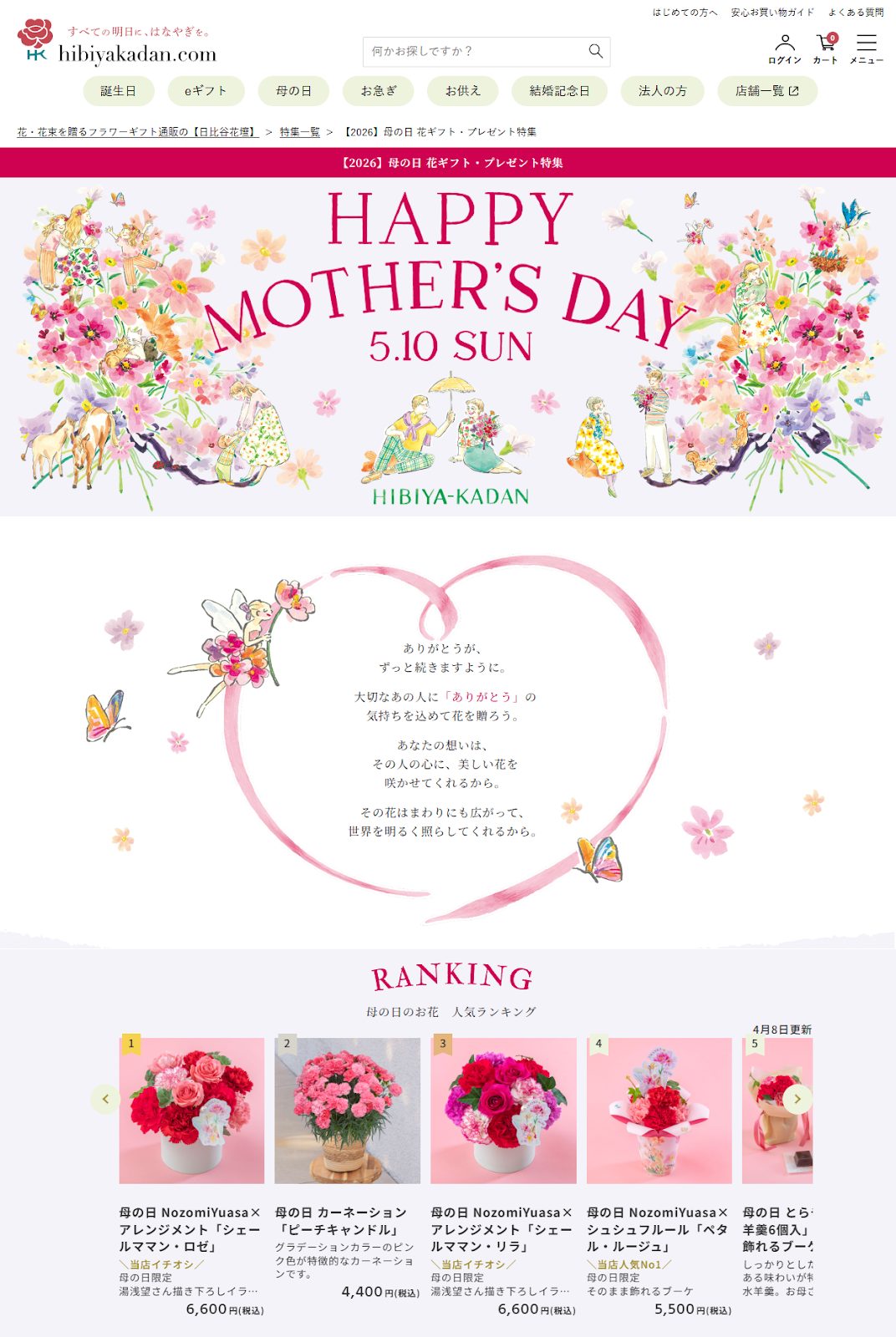 日比谷花壇の公式オンラインショップなら、王道の赤いカーネーションはもちろん、そのまま飾れるブーケや、デザイナーが手掛けるプリザーブドアレンジメントまで、開けた瞬間に気持ちが弾むラインナップが揃っています。