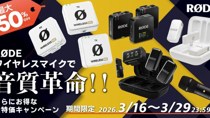 マイク あなたのコンテンツが劇的に変わる!RØDEワイヤレスマイクが最大50%オフで手に入る「音質革命」キャンペーン 動画や配信の音質向上に悩むクリエイター必見!世界中で愛されるRØDEワイヤレスマイクが、ゲインアシストやノイズリダクションといった革新的な機能であなたの「音の悩み」を解決します。今なら対象製品が最大50%オフになる期間限定キャンペーンを実施中。プロクオリティのクリアな音質を手に入れる絶好のチャンスです。 2026.03.16 マイク