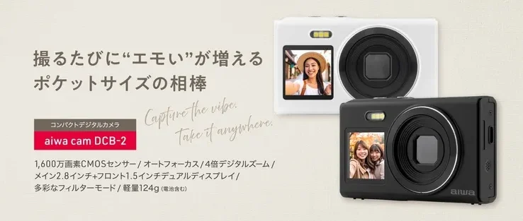 aiwa cam DCB-2は、30種類の多彩なフィルターで日常を「エモい」アートに変えるコンパクトデジタルカメラです。手のひらサイズで持ち運びやすく、デュアルディスプレイで自撮りやVlogも快適。10,800円という手頃な価格で、スマホでは味わえない特別な写真体験を提供します。本日12月25日より販売開始され、お得なウィンターセールも実施中です。